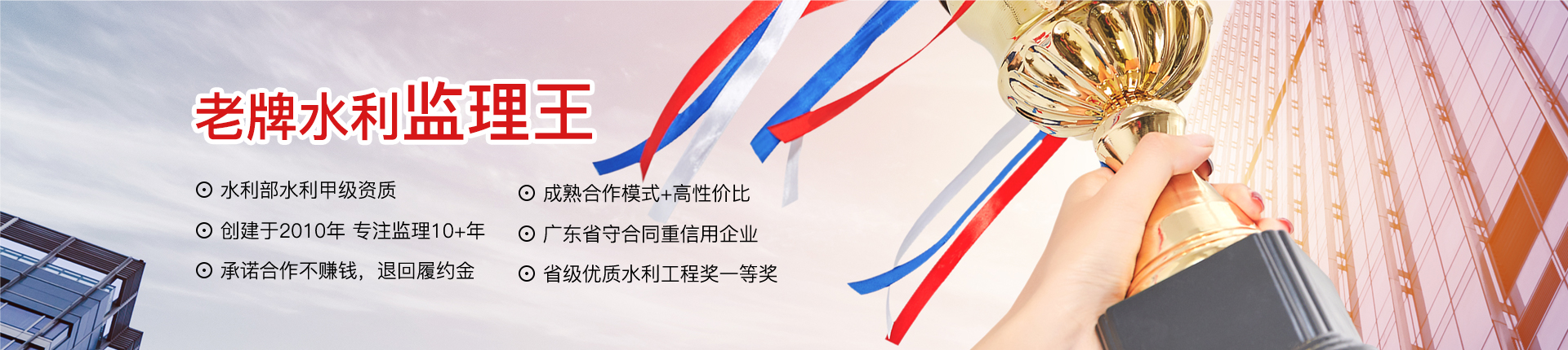 公司成立于2010年7月,10多年來為政府機構和大型房地產公司完成水利、房建、市政等項目累計上千個,屢獲廣東優質水利工程獎等各類專業獎項